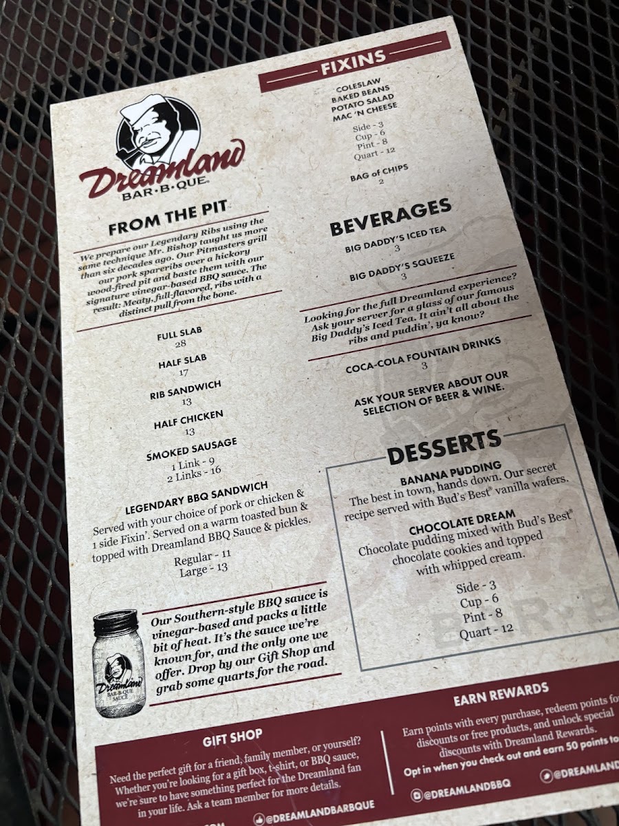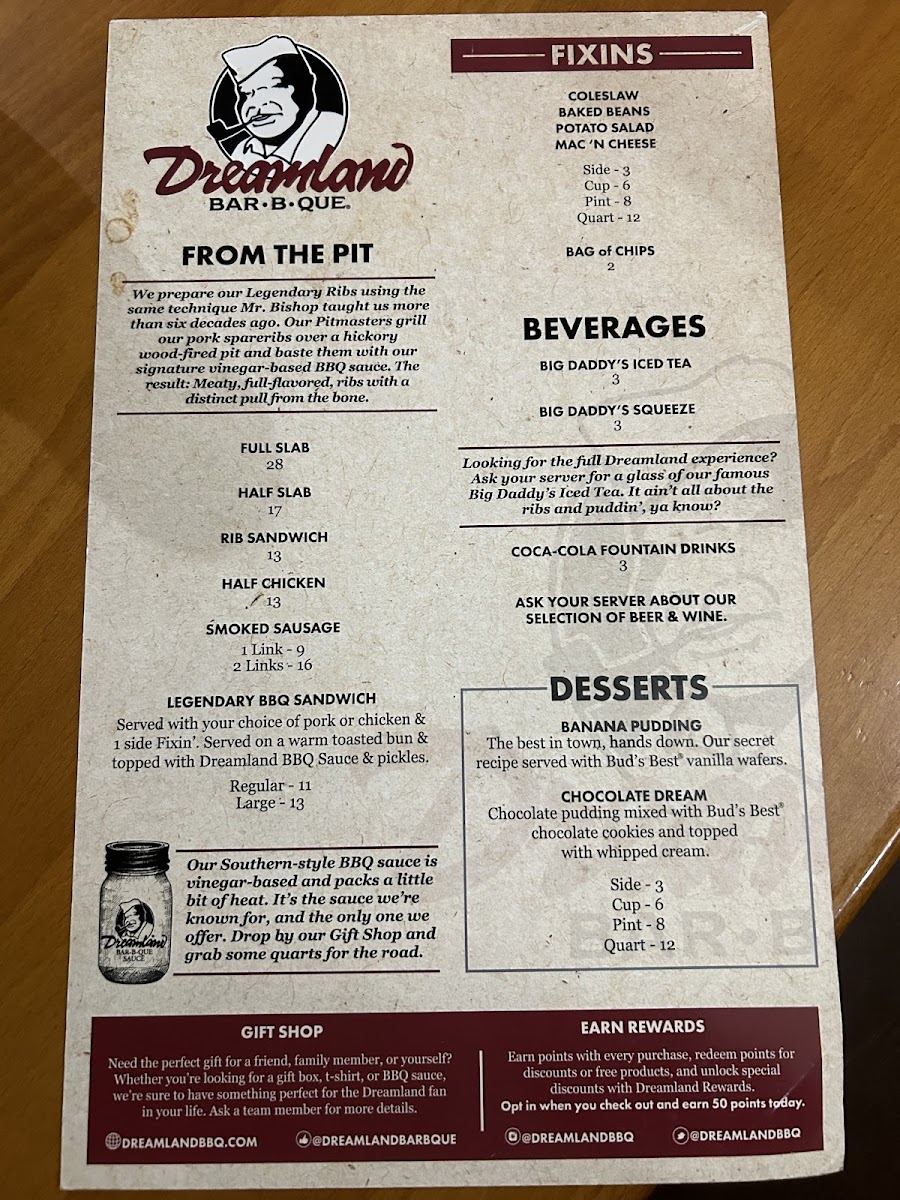 A fan-favorite! Our sausage links are grilled in our hickory wood-fired pit and served with a side of Dreamland BBQ Sauce.
